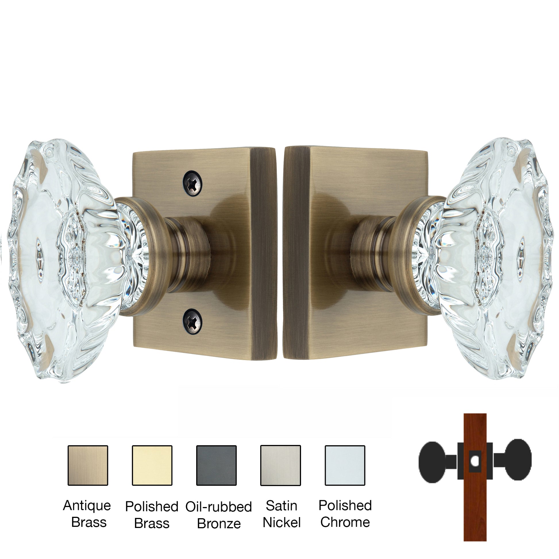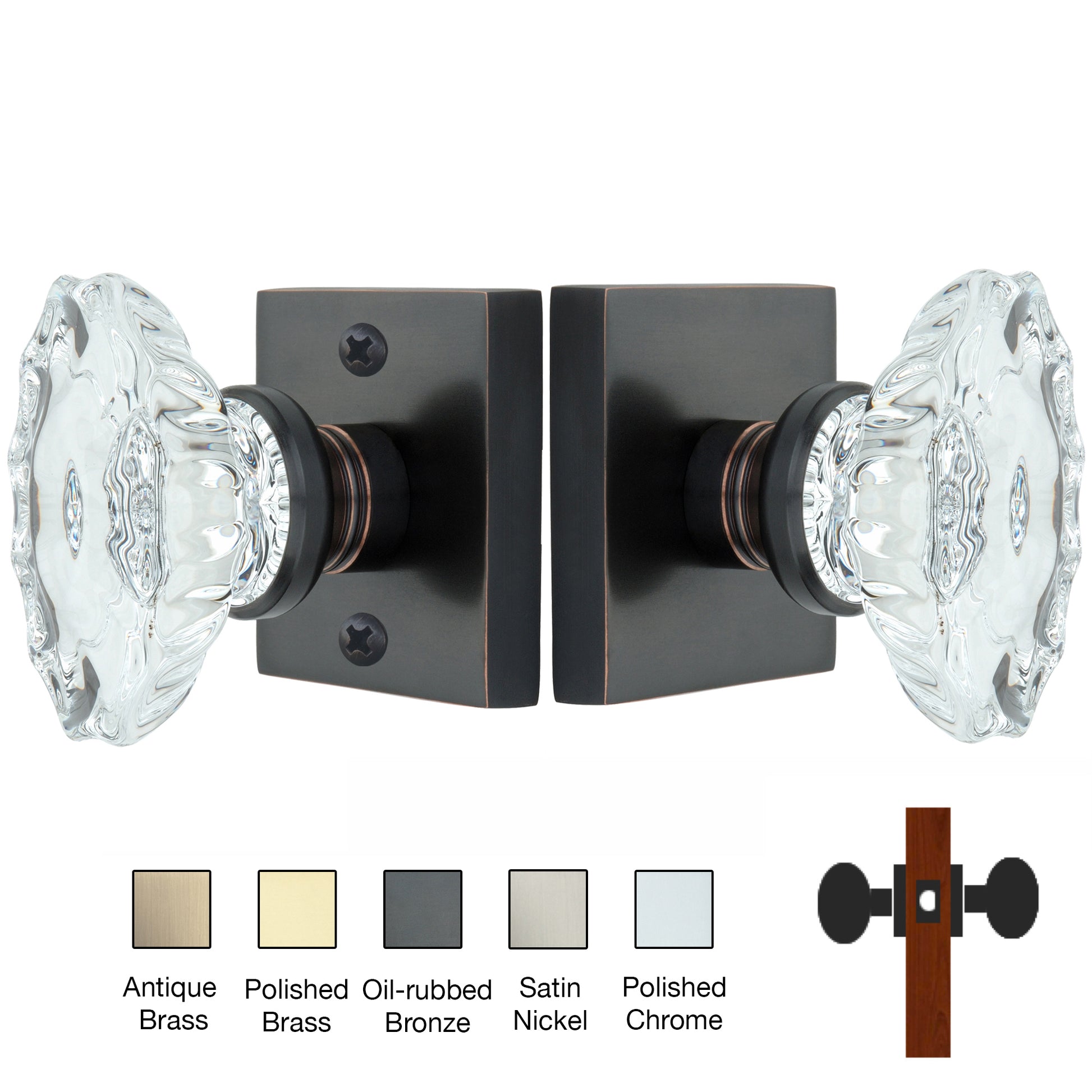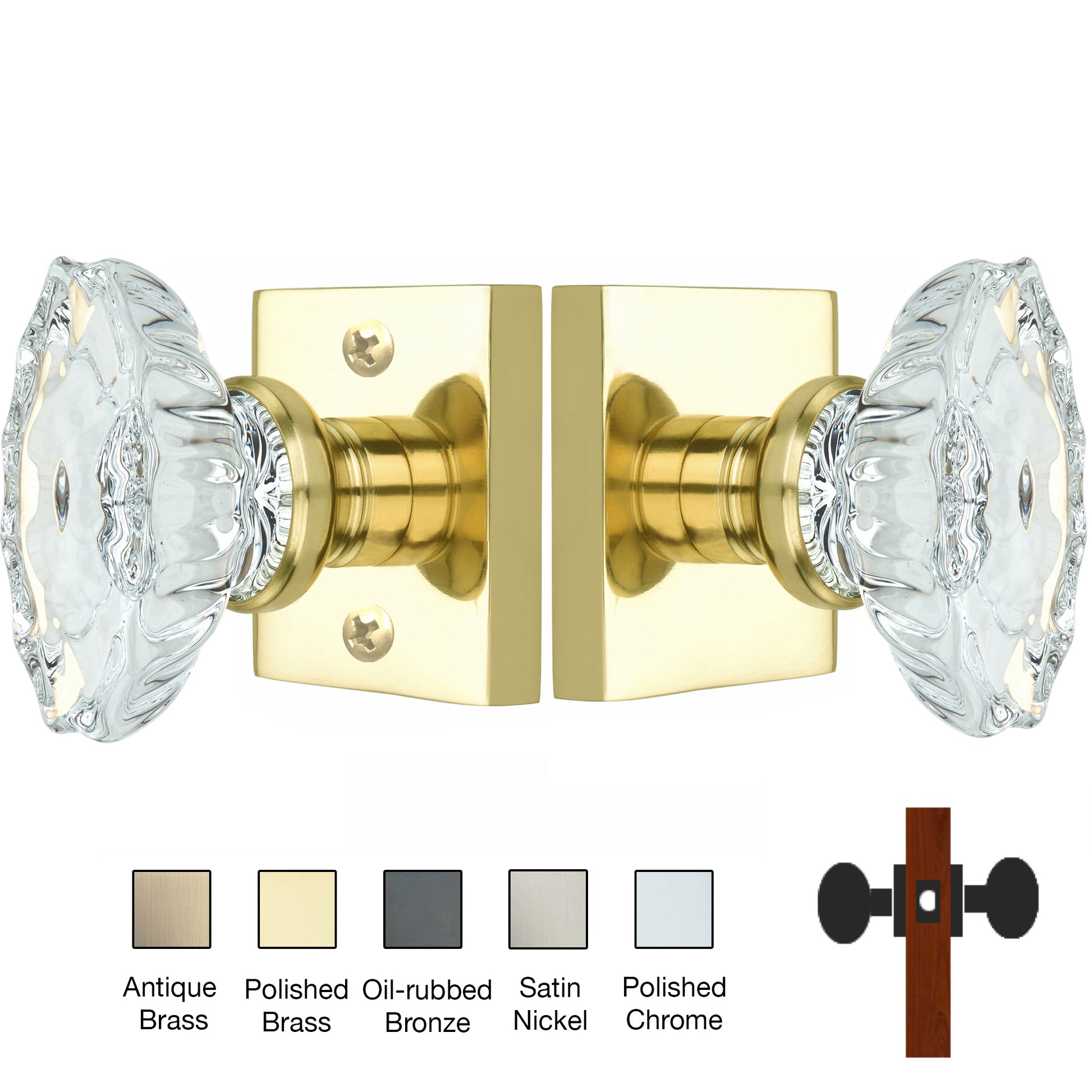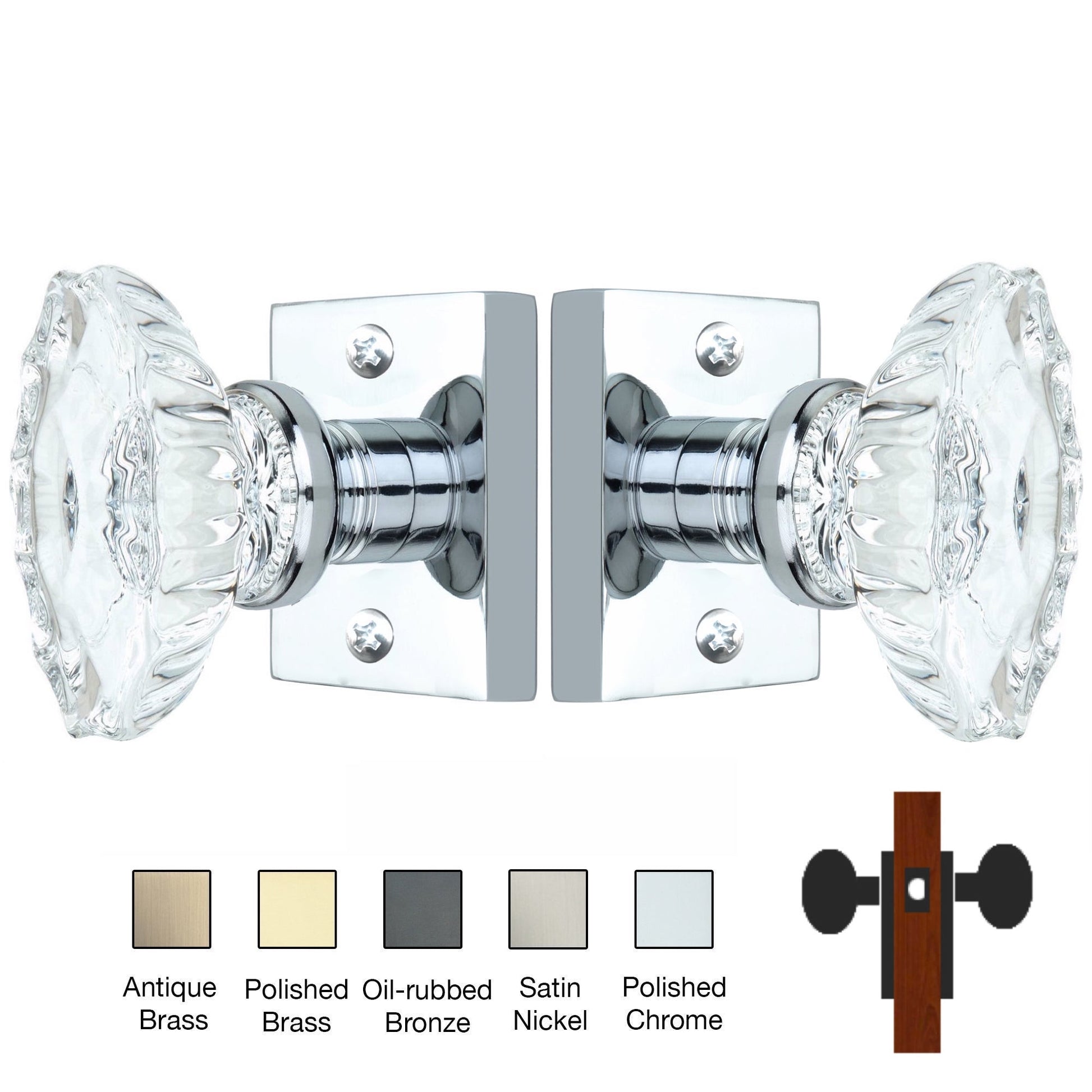 Square Rose with Calvert Crystal Door Knobs - Passage / Hallway / Closet