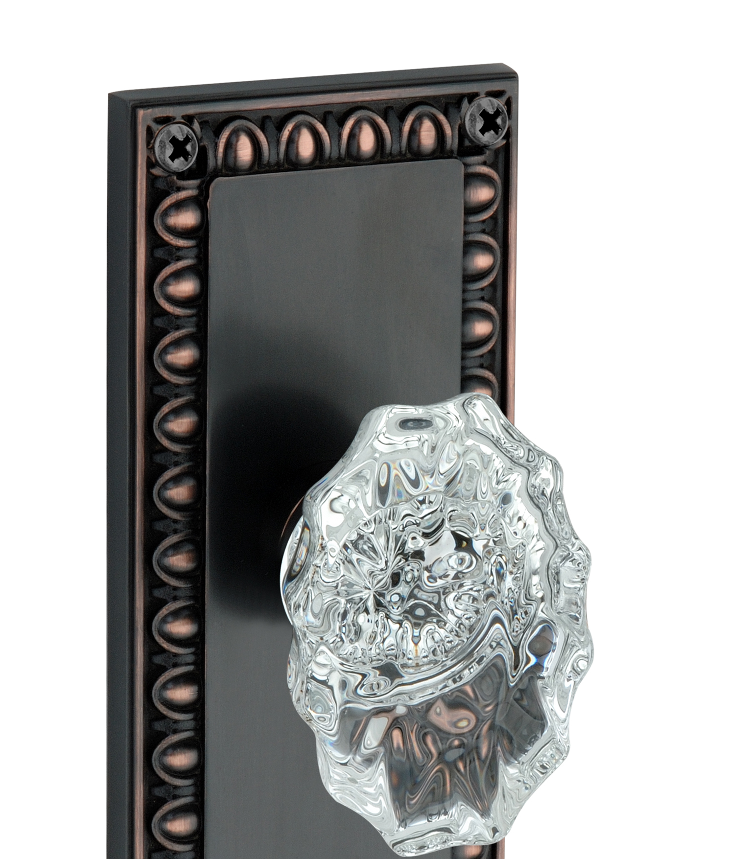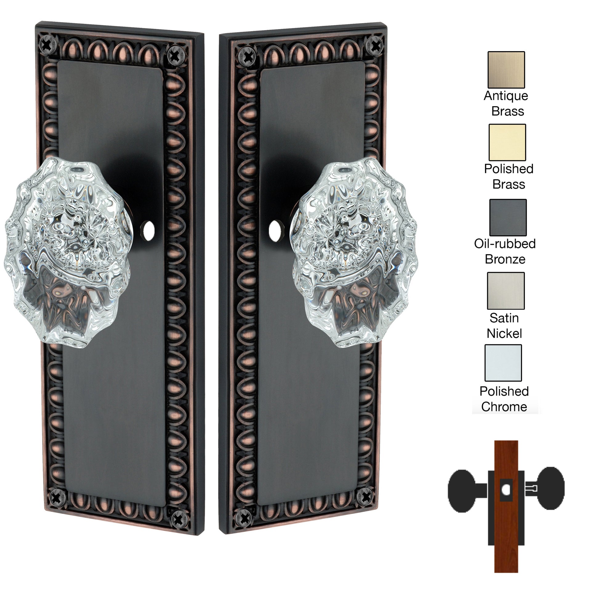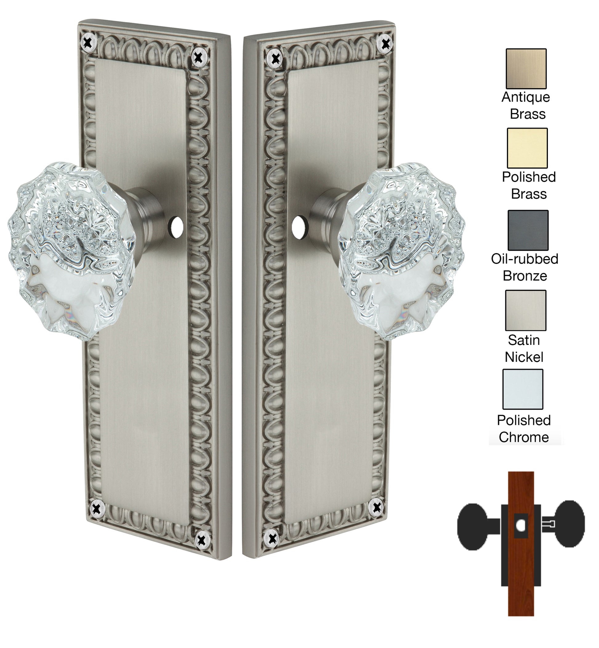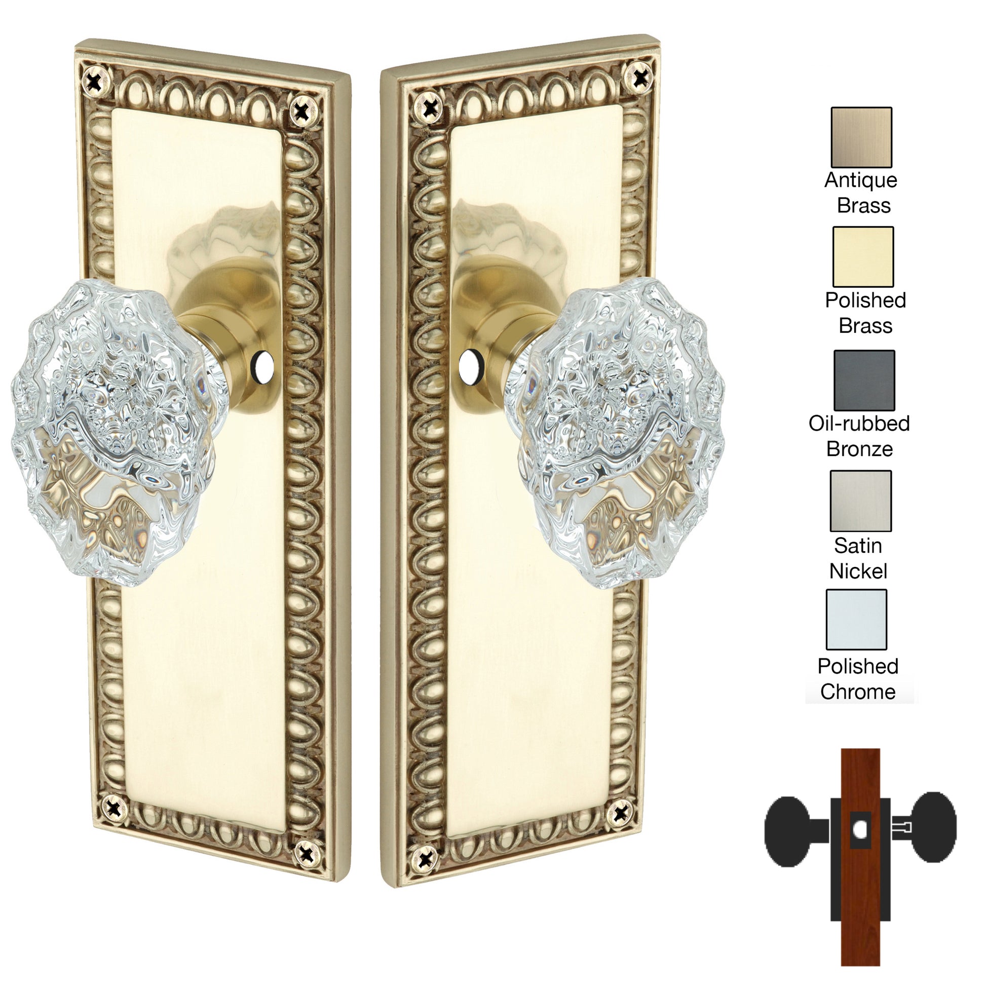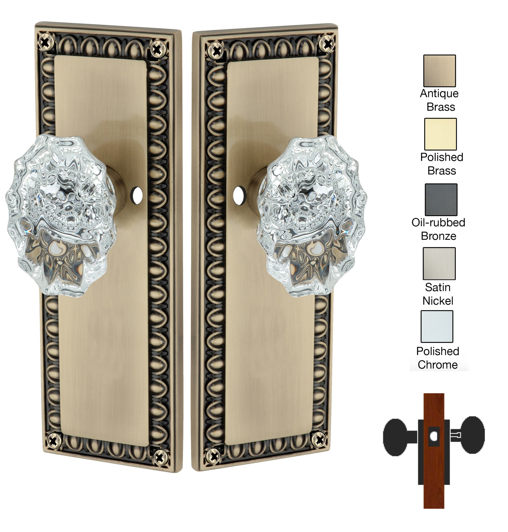 Egg and Dart Plate with Calvert Crystal Knobs - Privacy / Bedroom / Bathroom