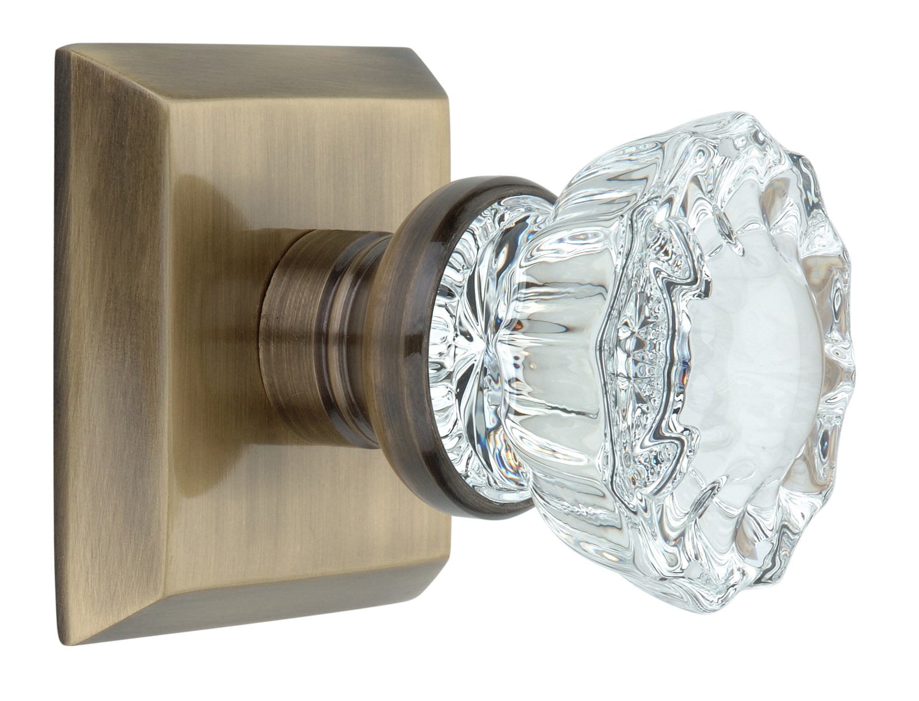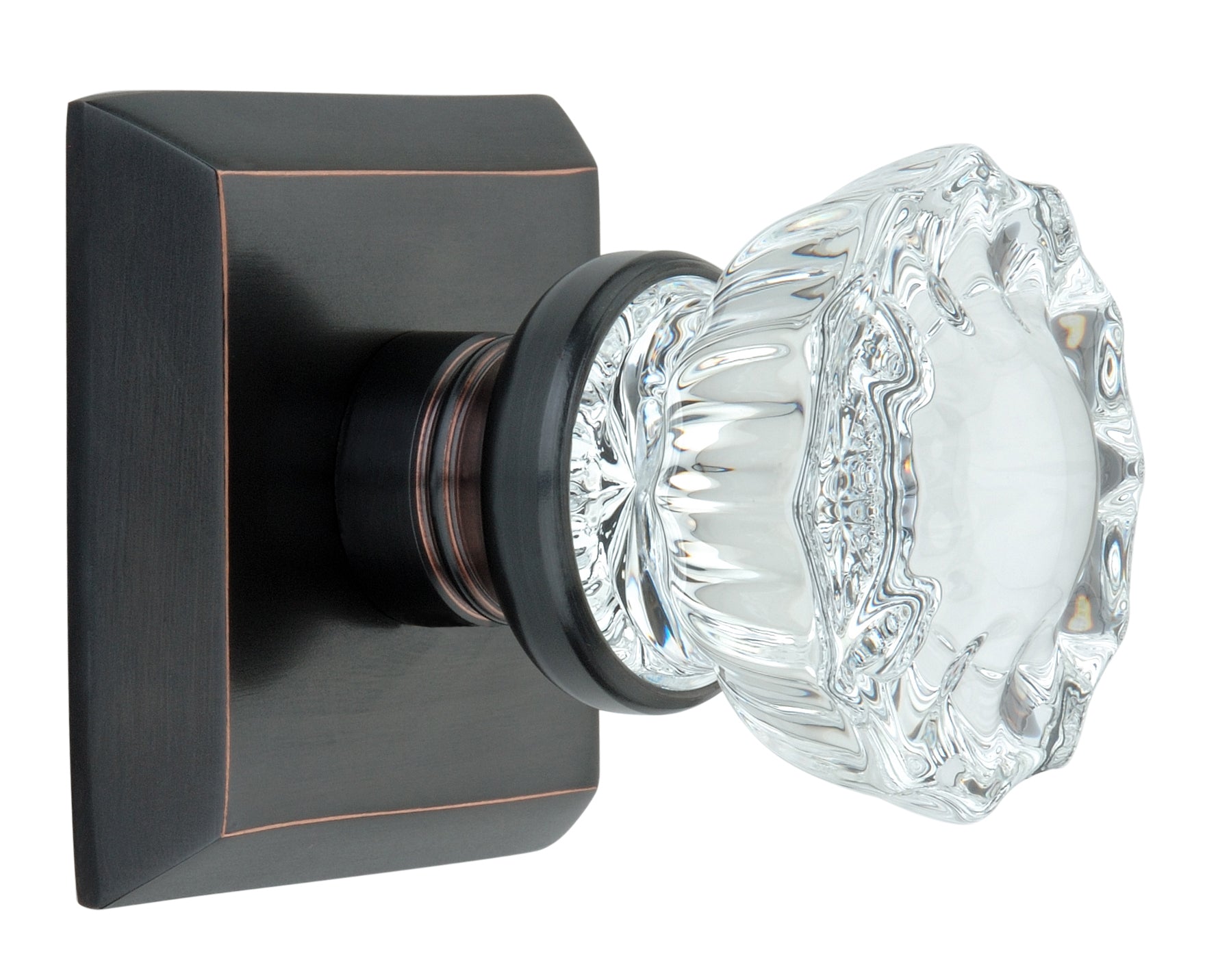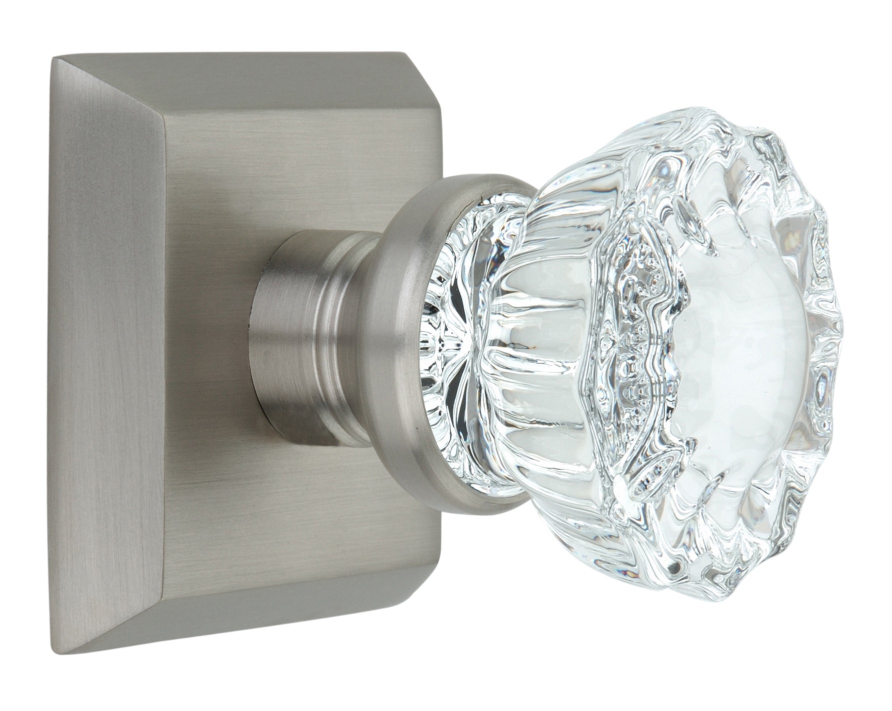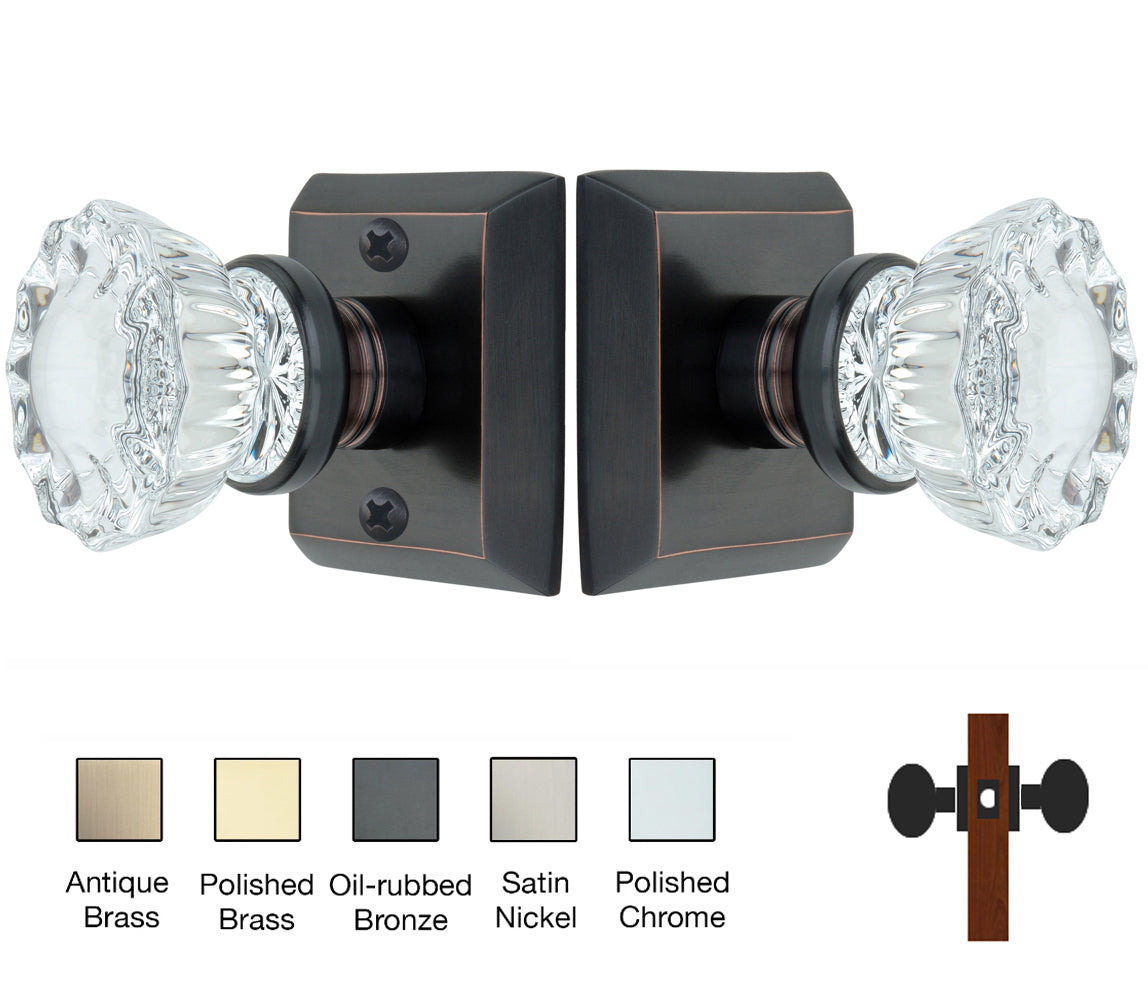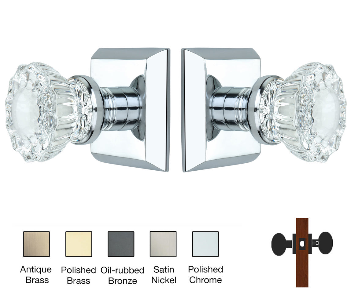 Metro Square Rose with Crystal Door Knobs - Passage / Hallway / Closet