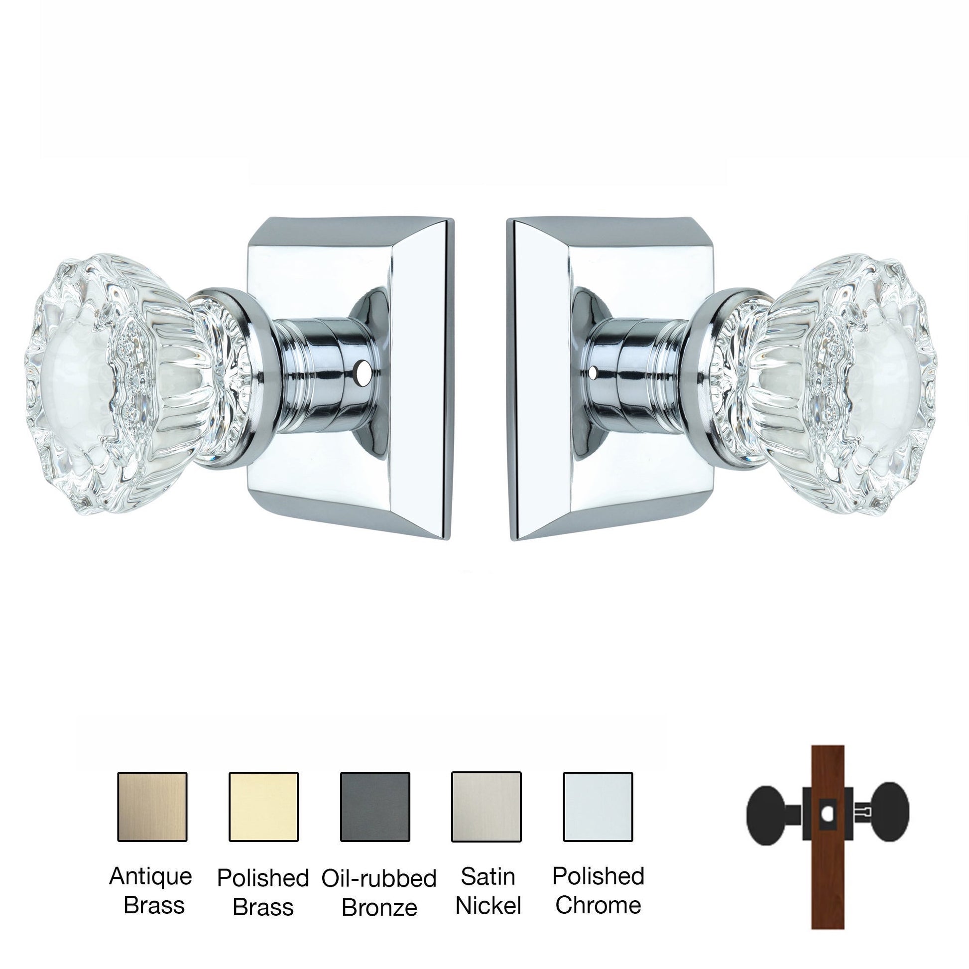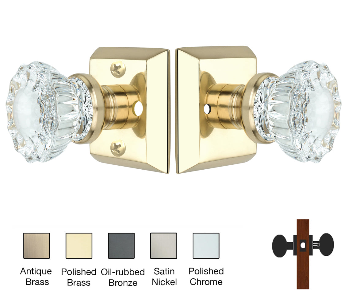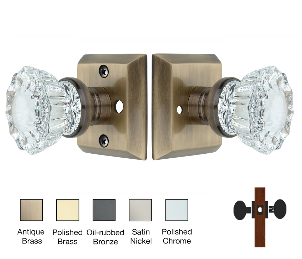 Metro Square Rose with Crystal Door Knobs - Privacy / Bathroom / Bedroom