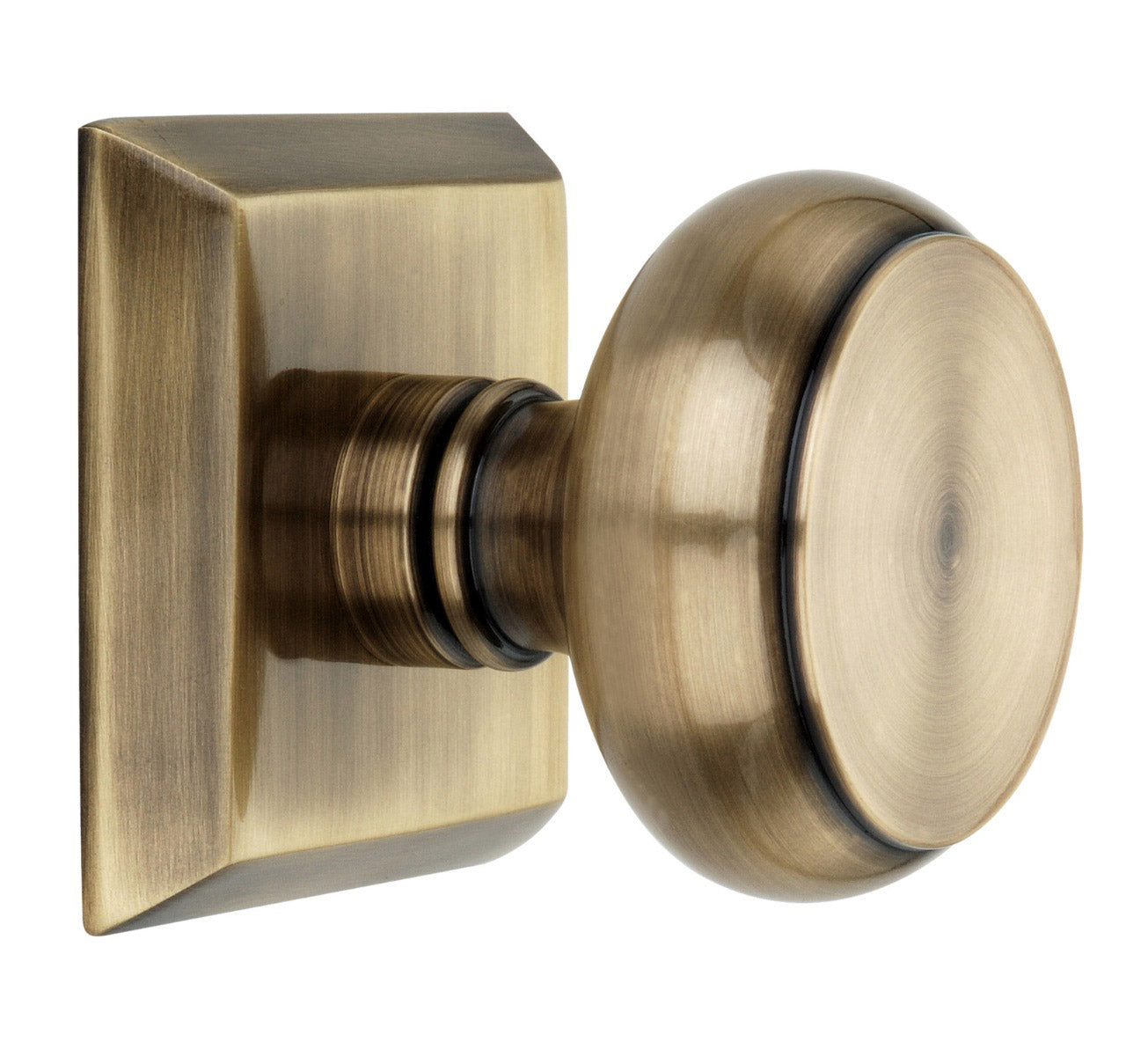 All brass parts are Solid Forged Brass (not just Brass plated). It is surface mounted and mounts directly to Door. Comes Complete with Mounting Hardware. The design of these premium Door Knobs with a forged brass rose will fit perfectly into a vintage or new door.