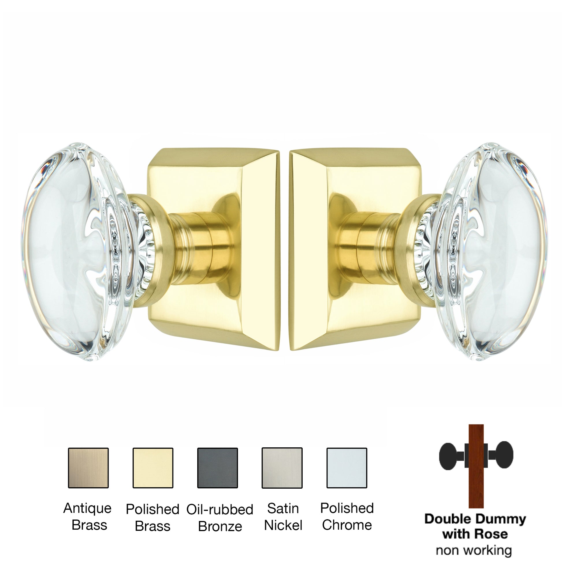 Metro Square Rose with Oval Crystal Knobs - Double Dummy