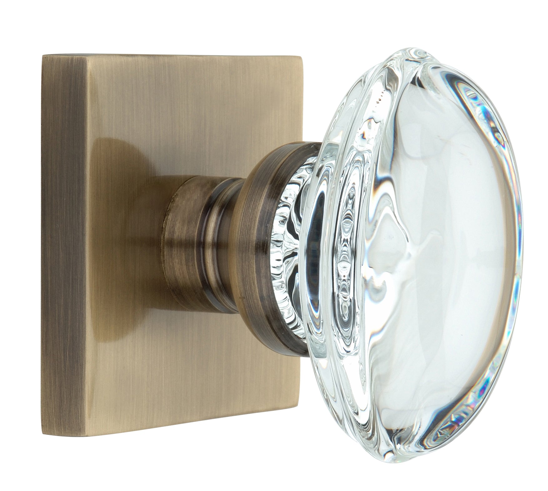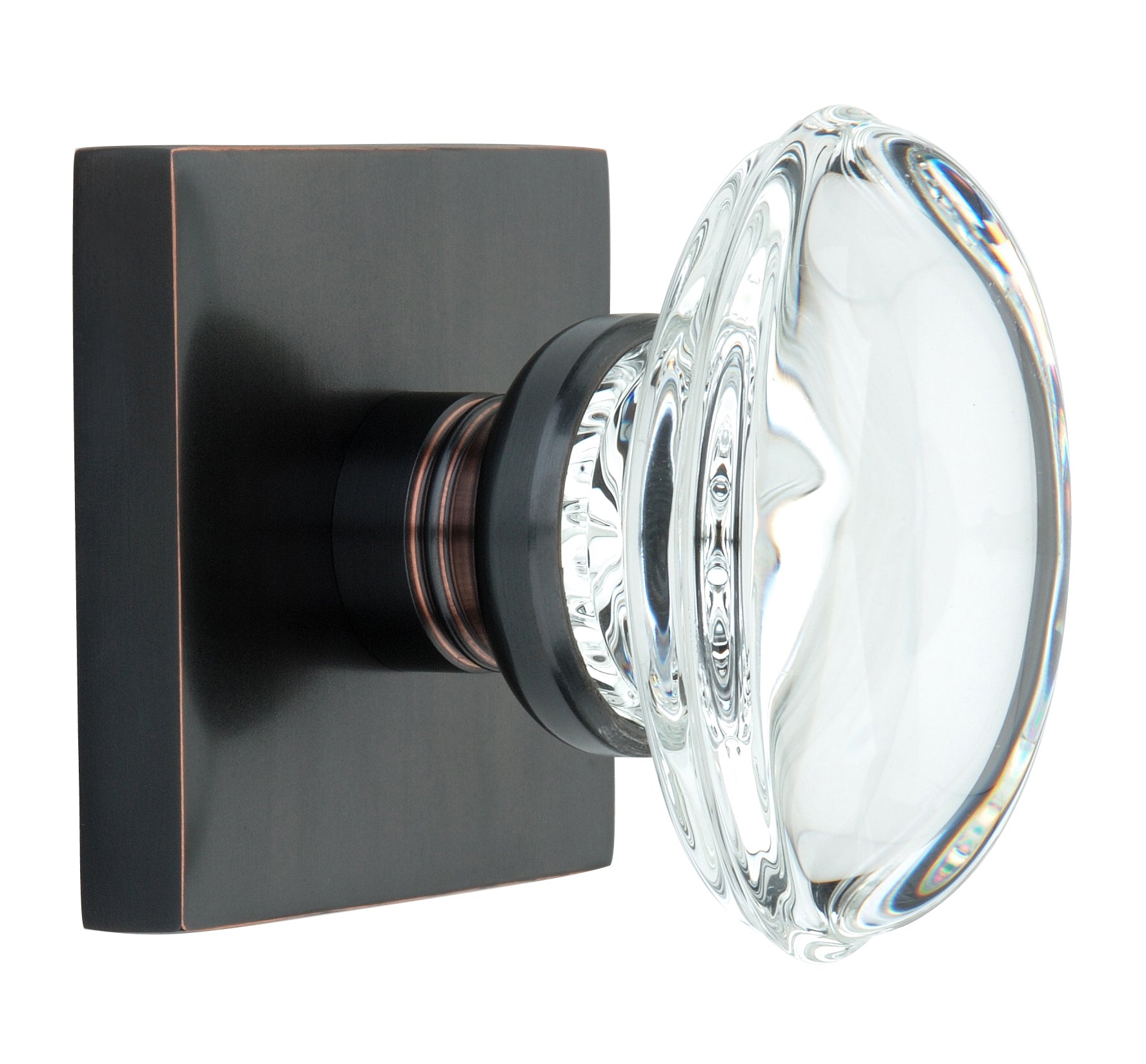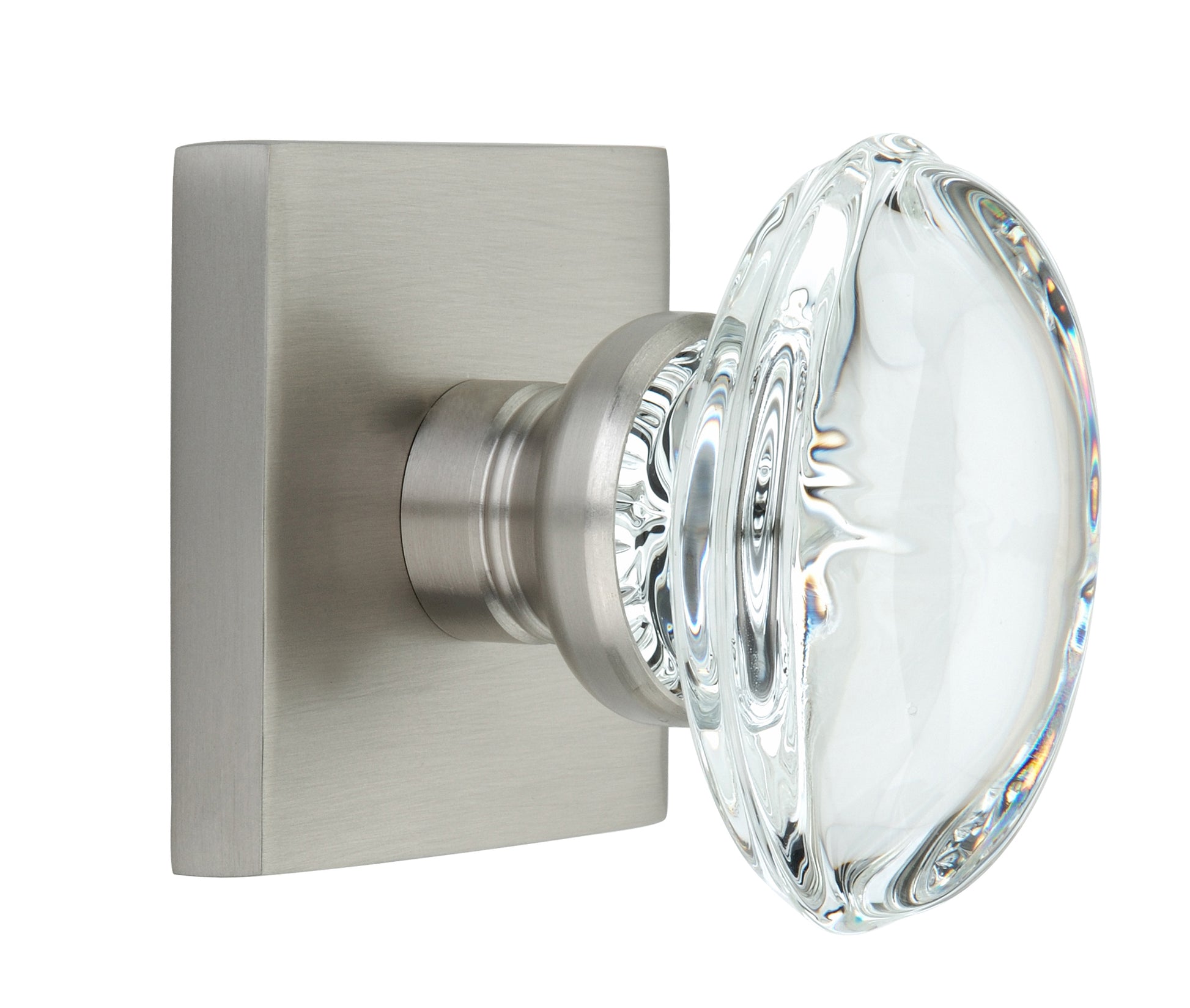 Square Rose with Oval Crystal Door Knobs - Double Dummy