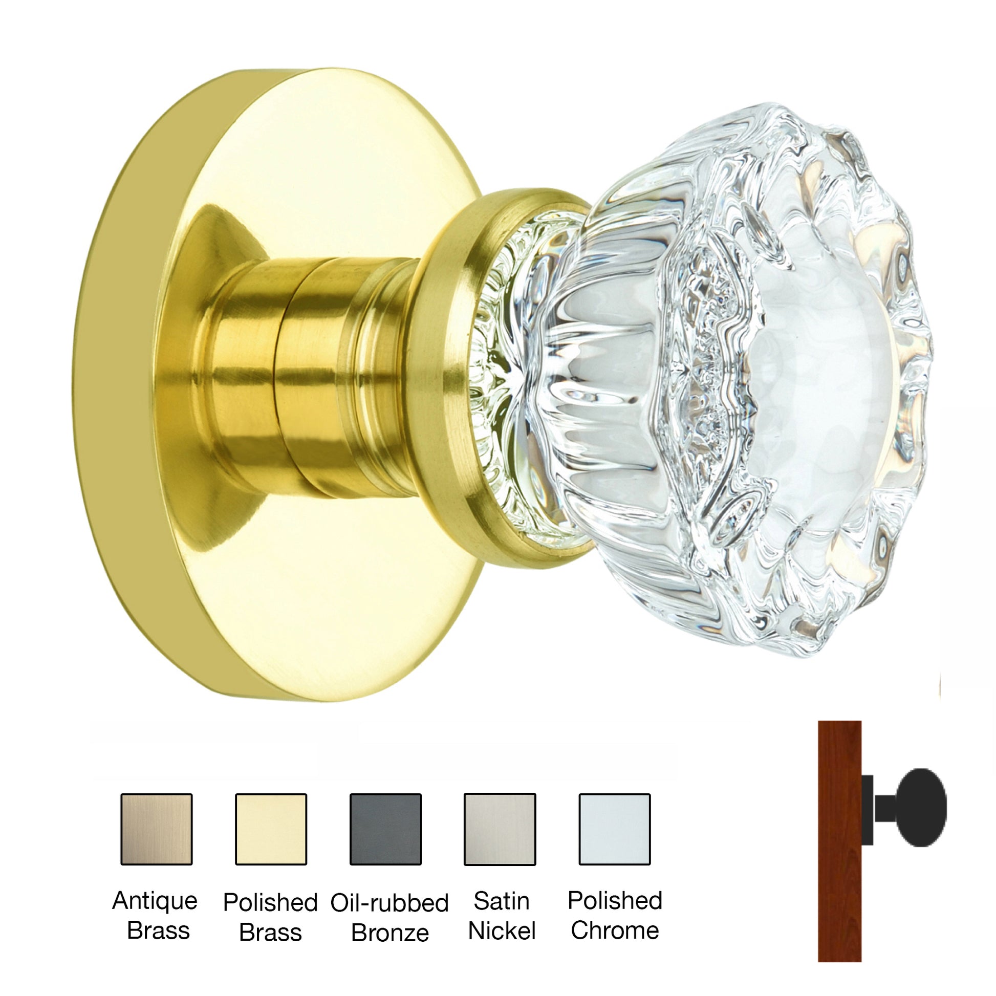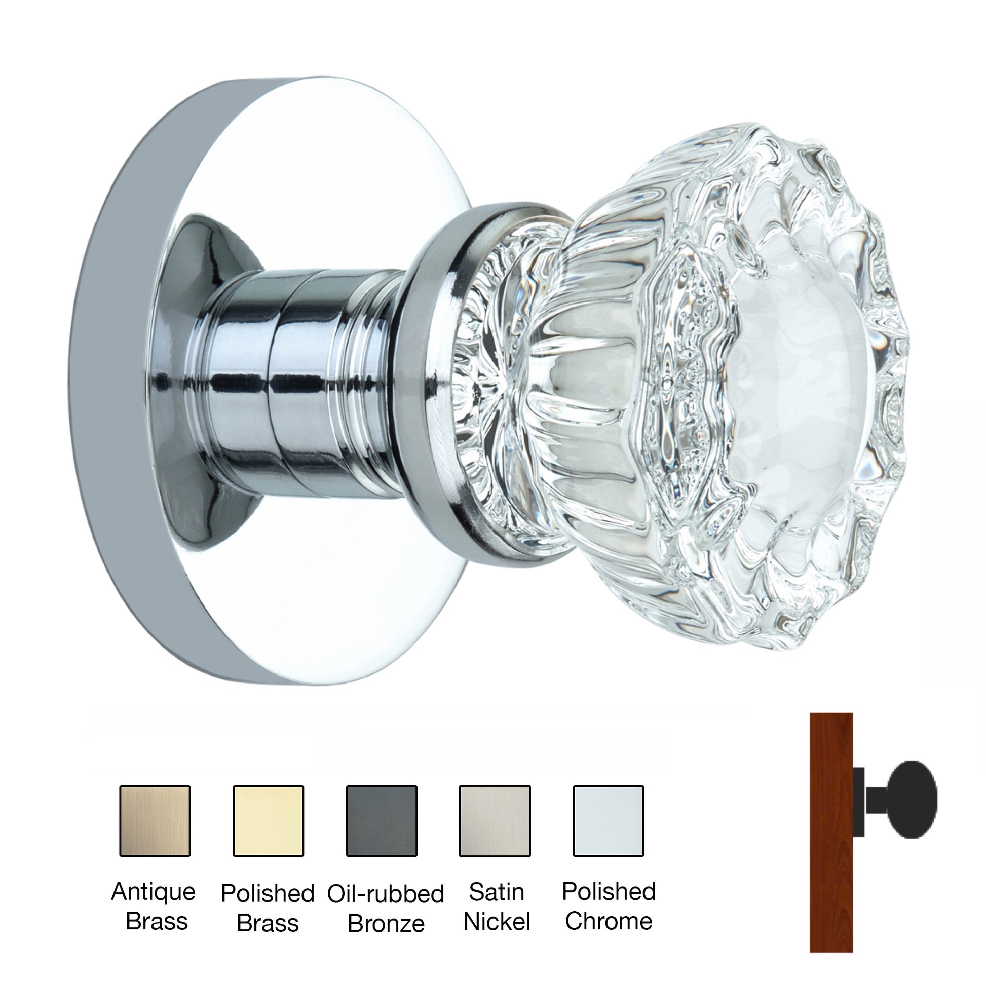 All brass parts are Solid Forged Brass (not just Brass plated). It is surface mounted and mounts directly to Door. Comes Complete with Mounting Hardware. The design of these premium Door Knobs with a forged brass rose will fit perfectly into a vintage or new door.