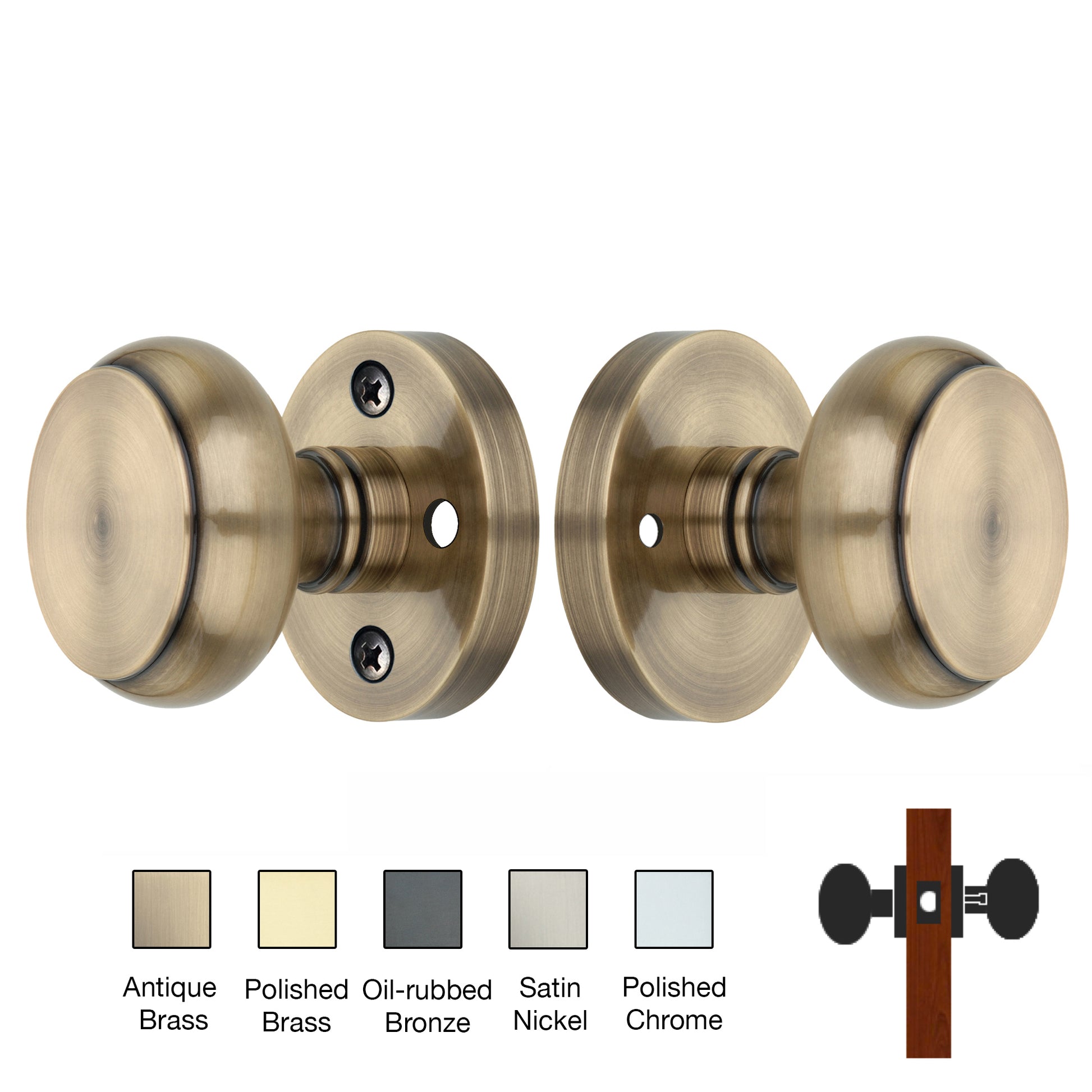All brass parts are Solid Forged Brass (not just Brass plated). It is surface mounted and mounts directly to Door. Comes Complete with Mounting Hardware. The design of these premium Door Knobs with a forged brass rose will fit perfectly into a vintage or new door.