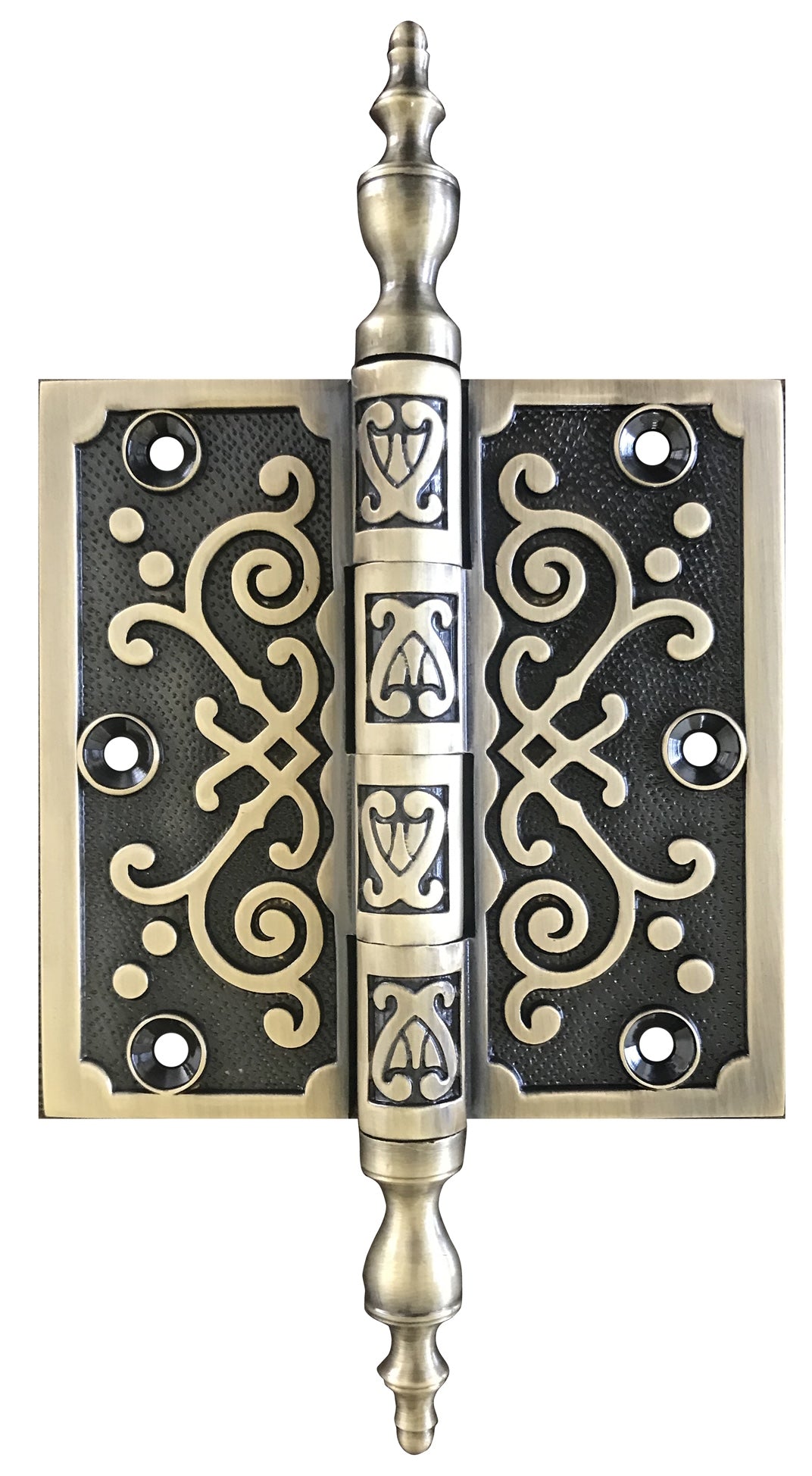 These strikingly beautiful Premium Abstract-Pattern Hinge with Decorative Steeple Tips are made from premium quality brass. The extraordinary abstract pattern are inspired by antique design and have fresh and modern appeal. Comes in two sizes - 3.5 inches and 4 inches. and in multiple finishes.