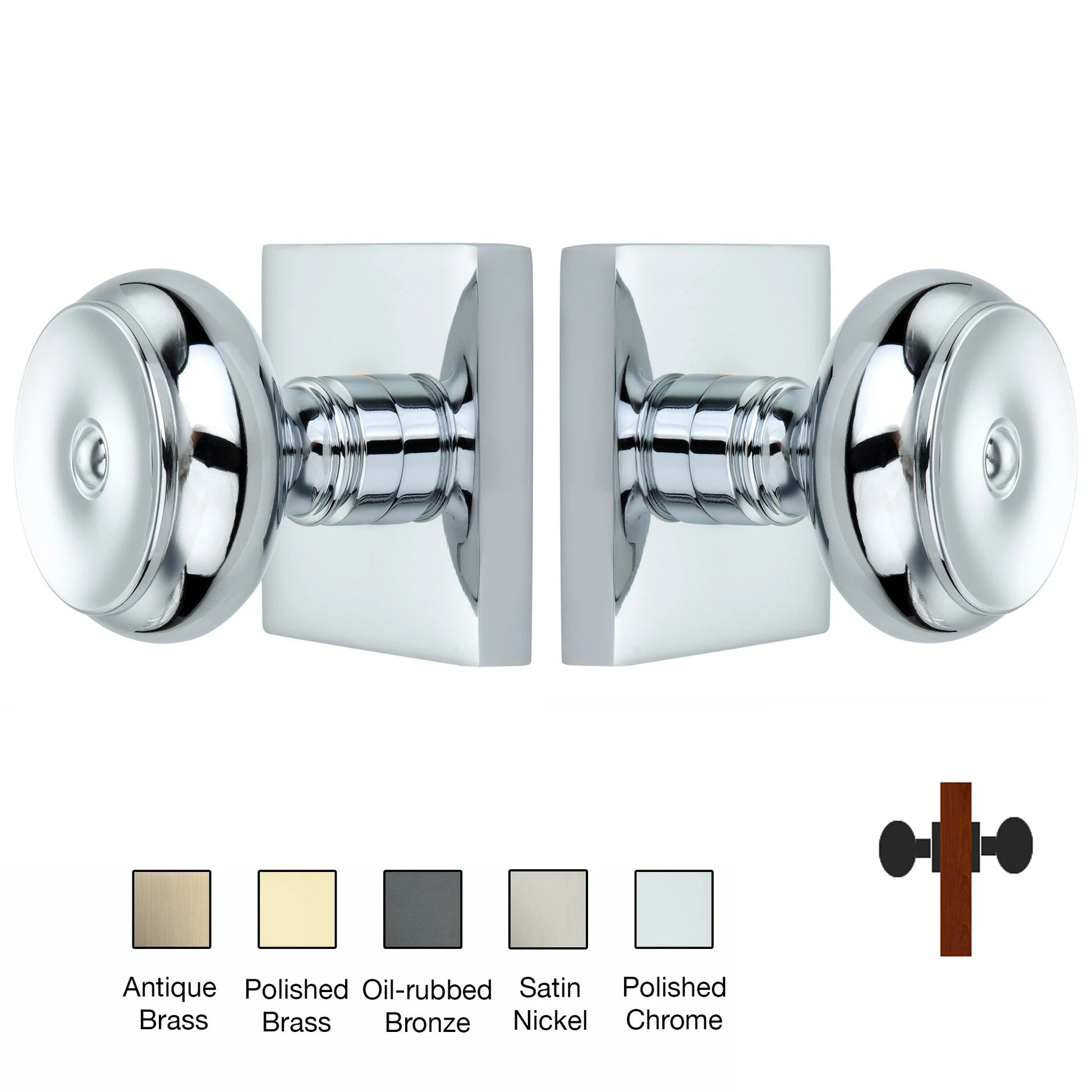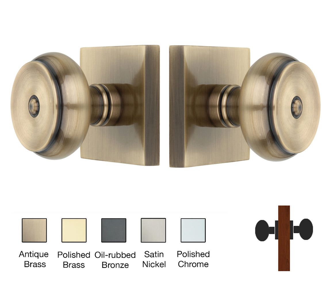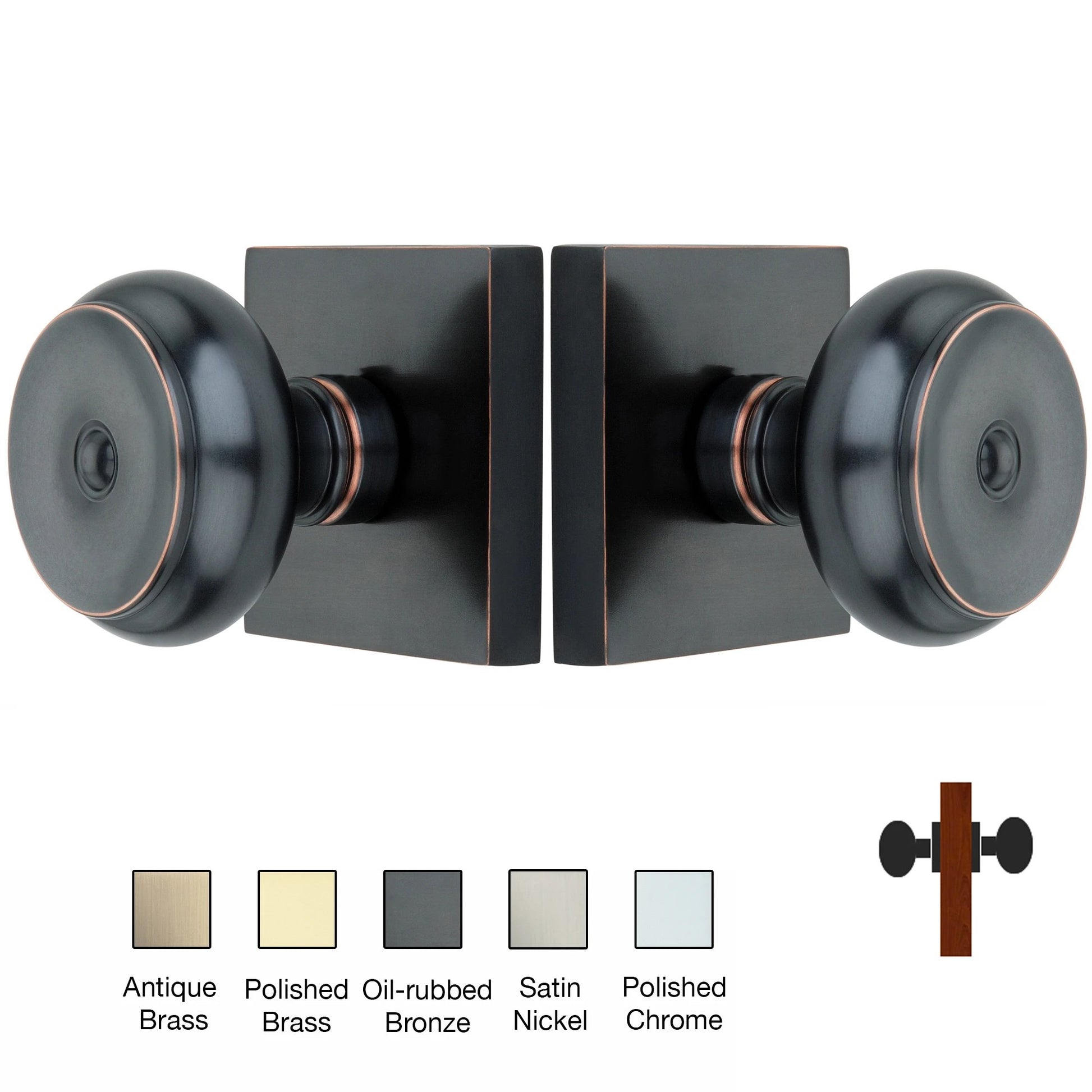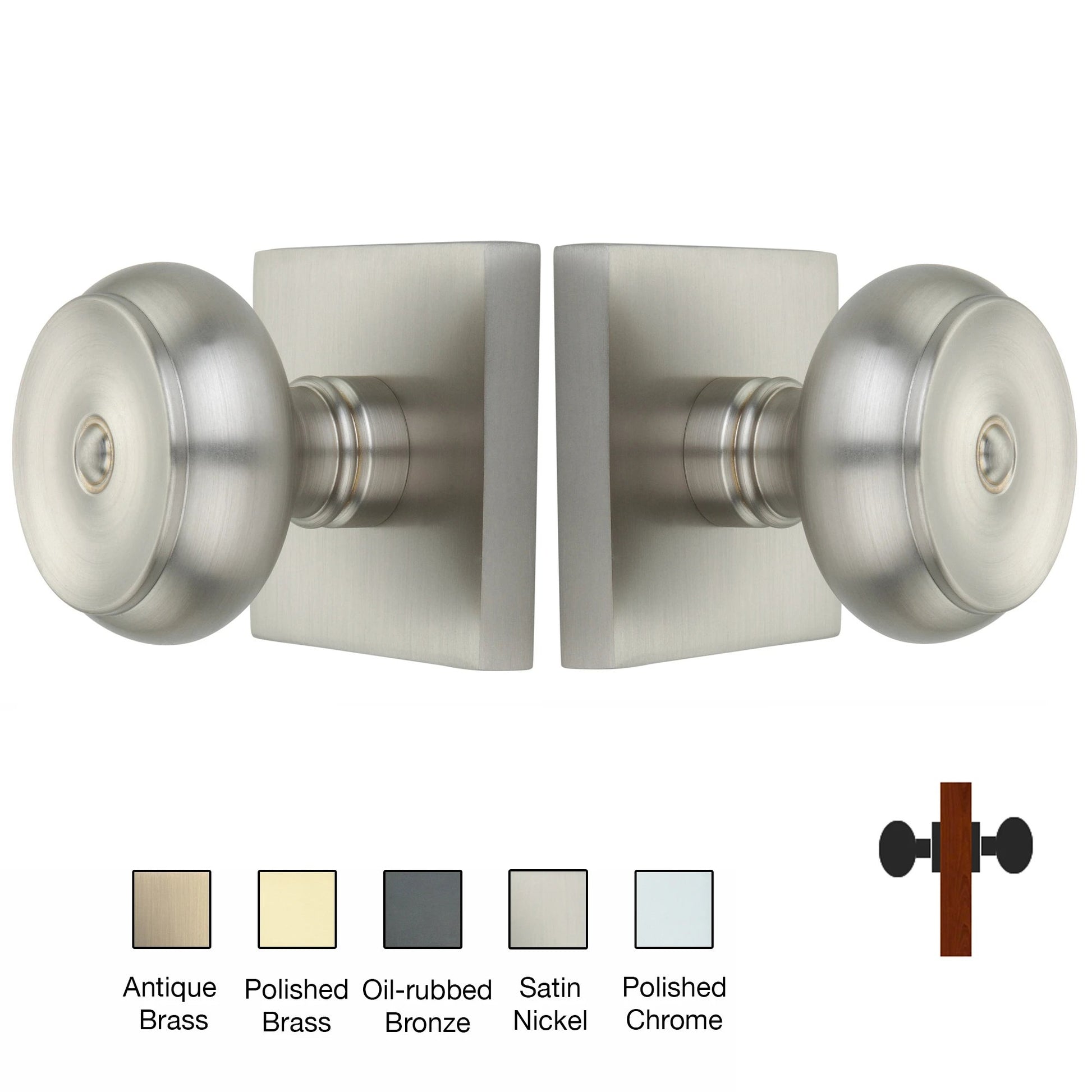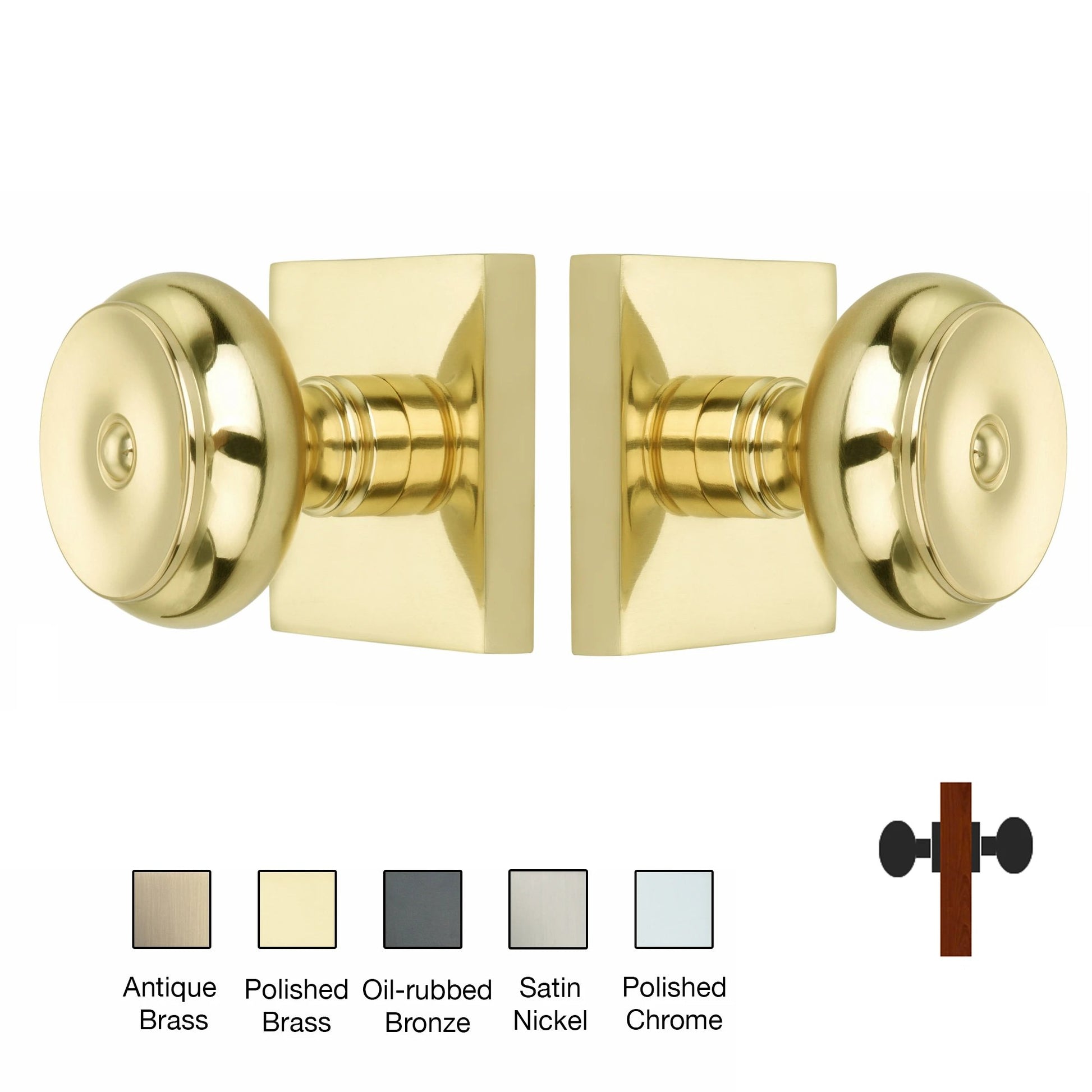 This is a non-functioning door knob pair with no latch, used for push/pull function only. All brass parts are Solid Forged Brass (not just Brass plated). It is surface mounted and mounts directly to Door. Comes Complete with Mounting Hardware. The design of these premium Door Knobs with a forged brass rose will fit perfectly into a vintage or new door.Finishes: