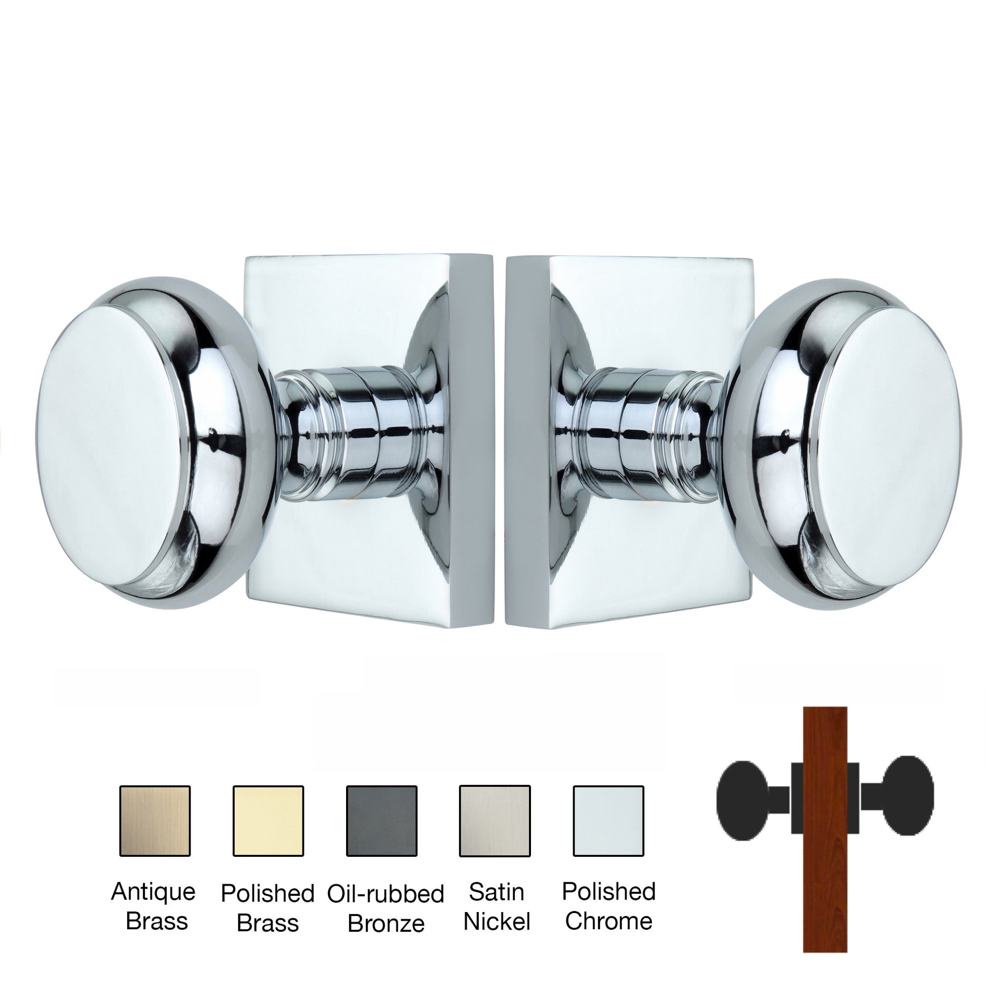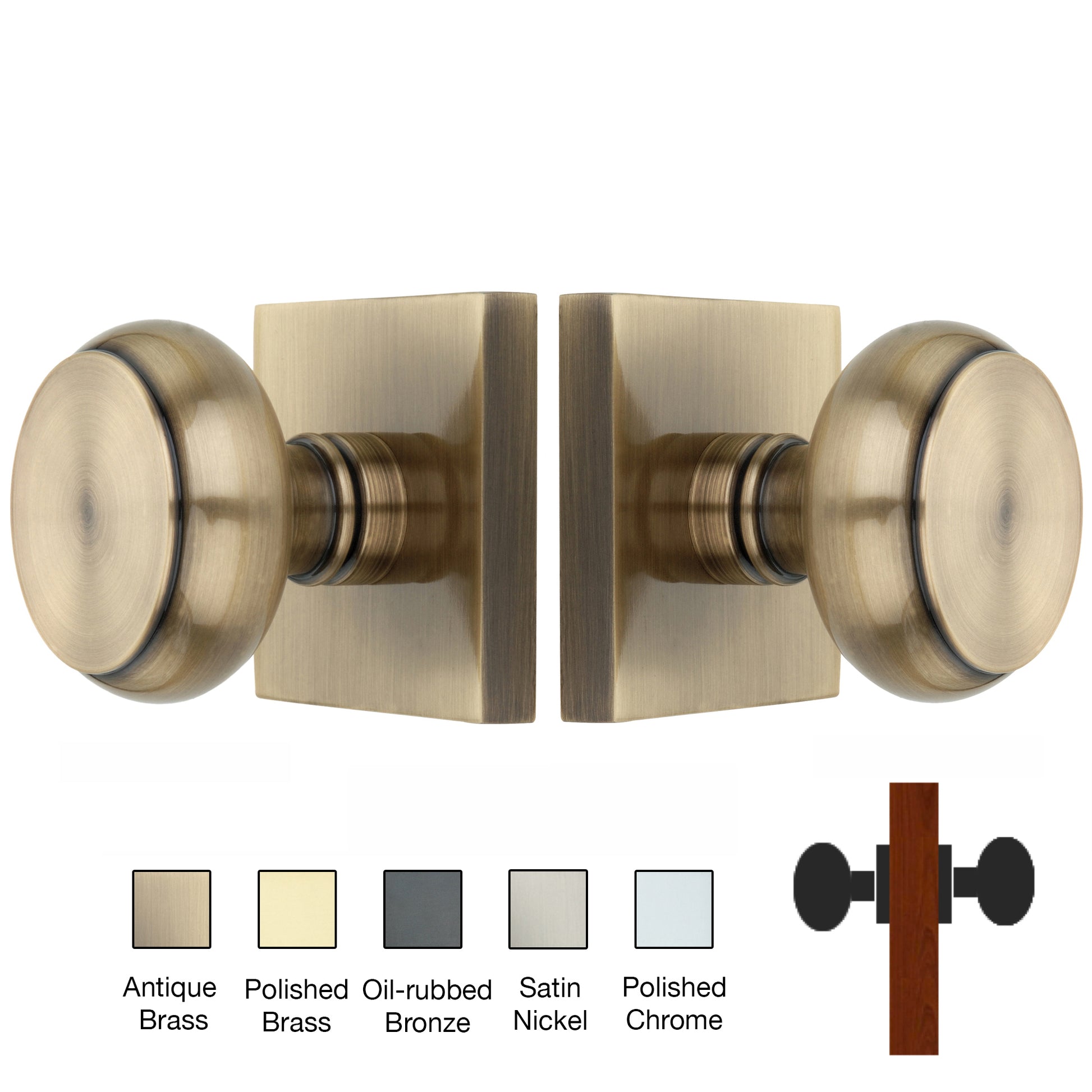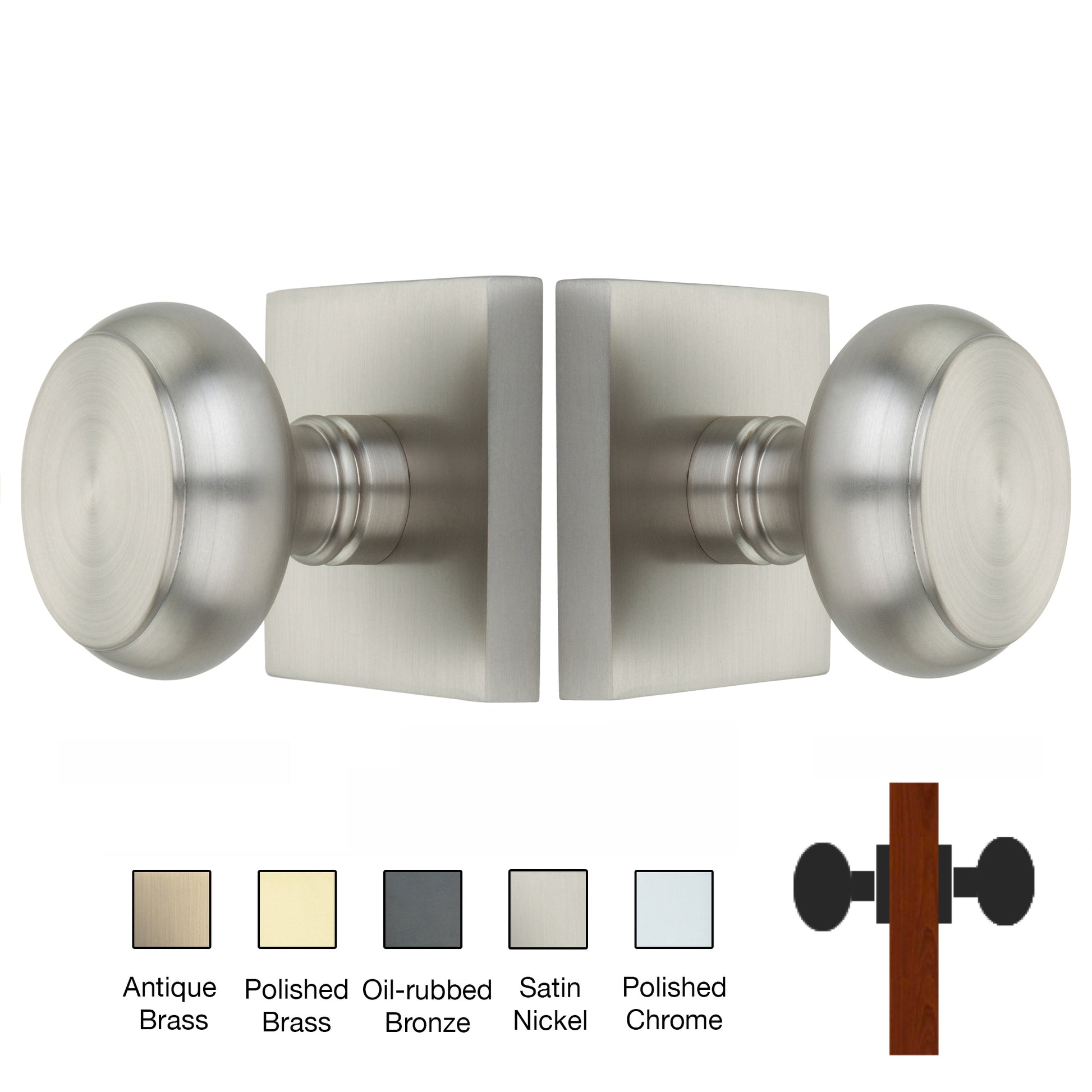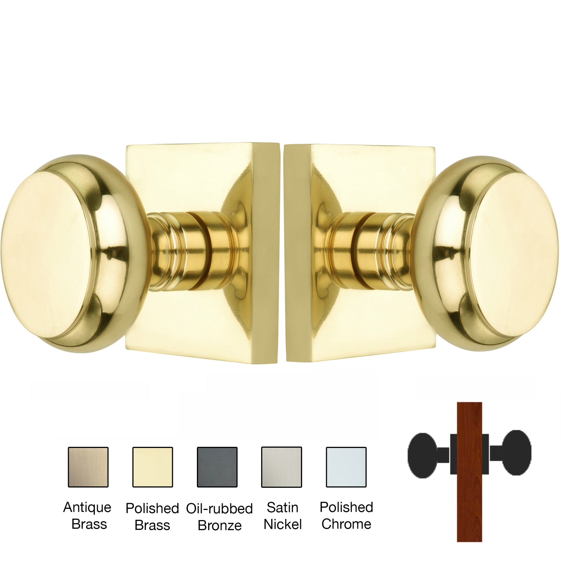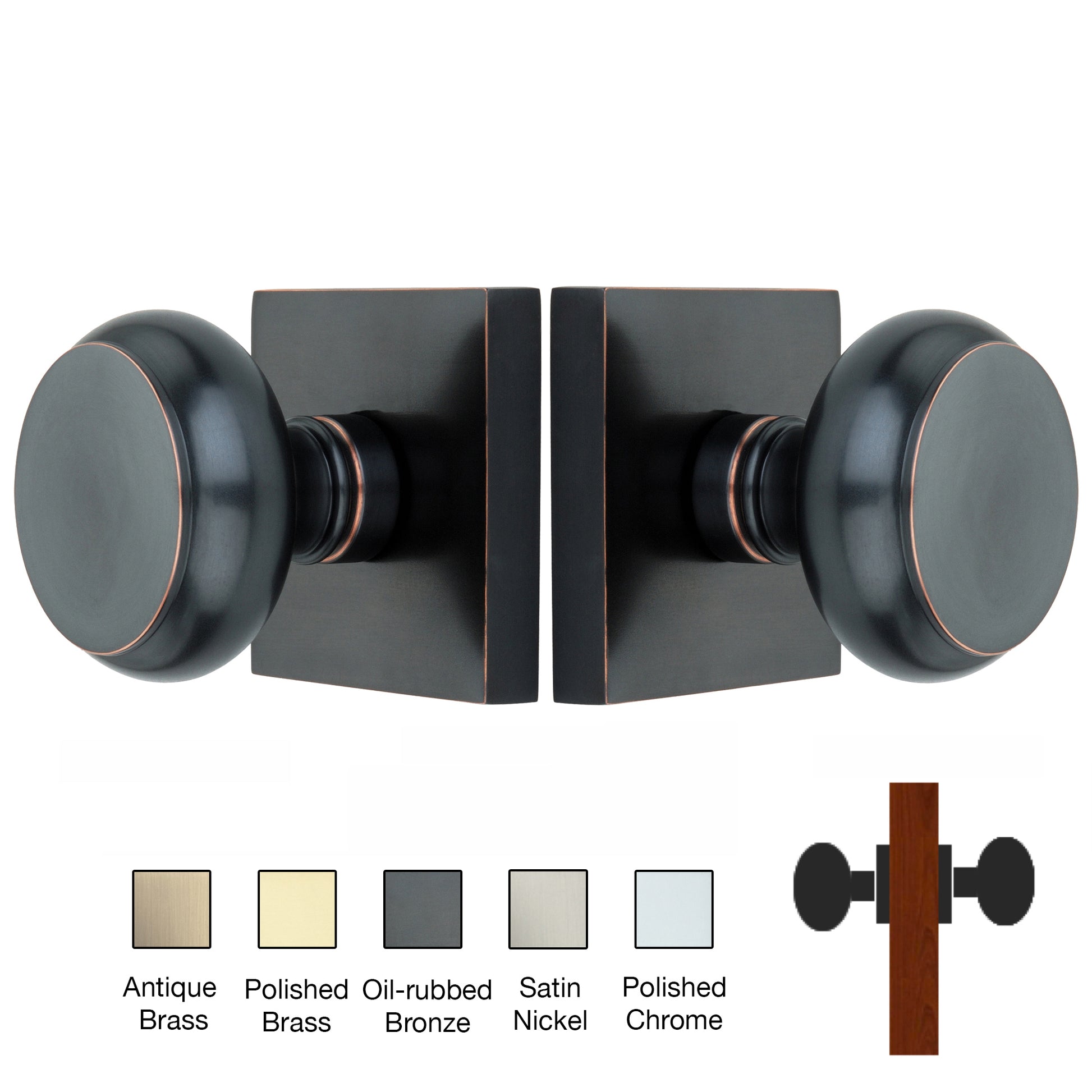 This is a non-functioning door knob pair with no latch, used for push/pull function only. All brass parts are Solid Forged Brass (not just Brass plated). It is surface mounted and mounts directly to Door. Comes Complete with Mounting Hardware. The design of these premium Door Knobs with a forged brass rose will fit perfectly into a vintage or new door.Finishes: