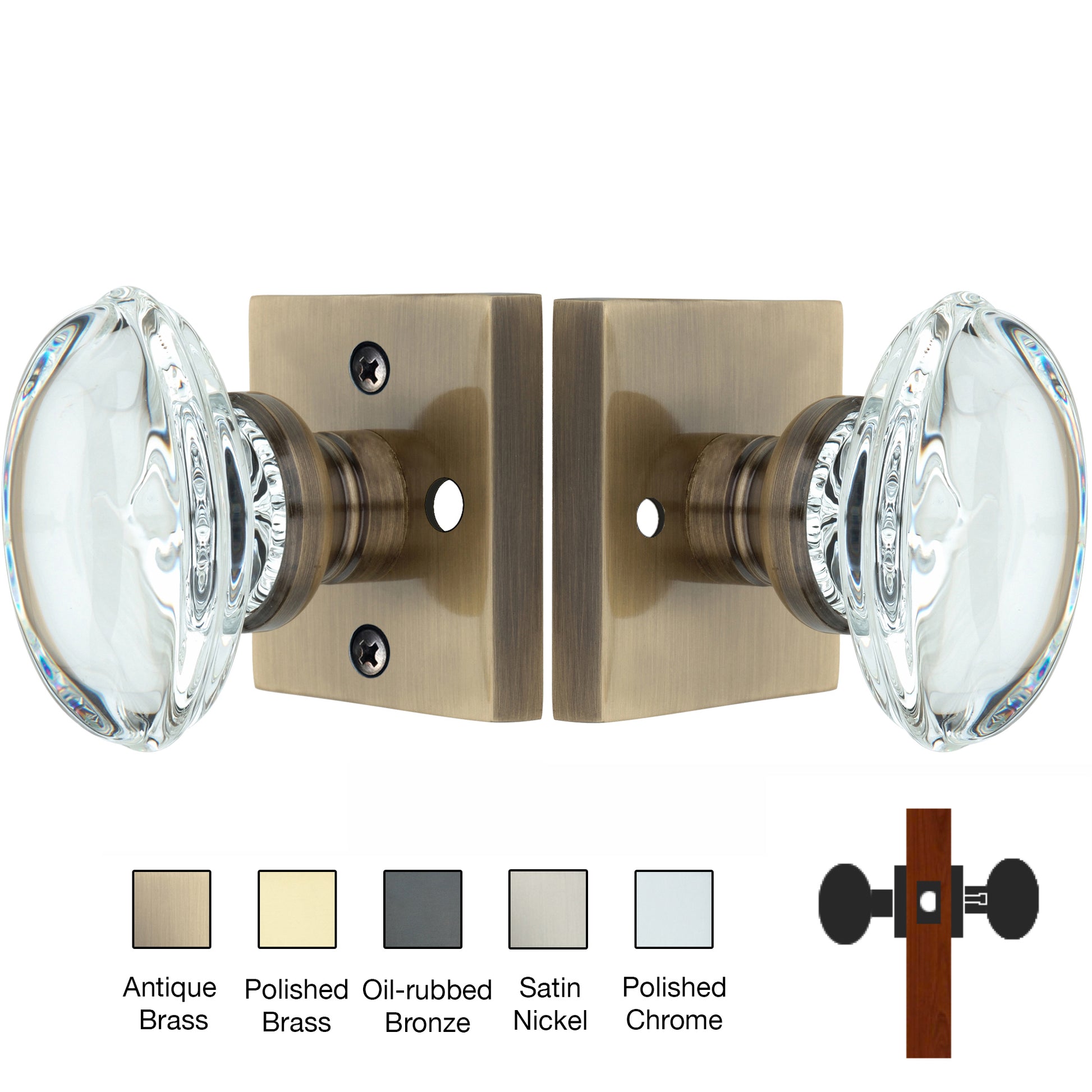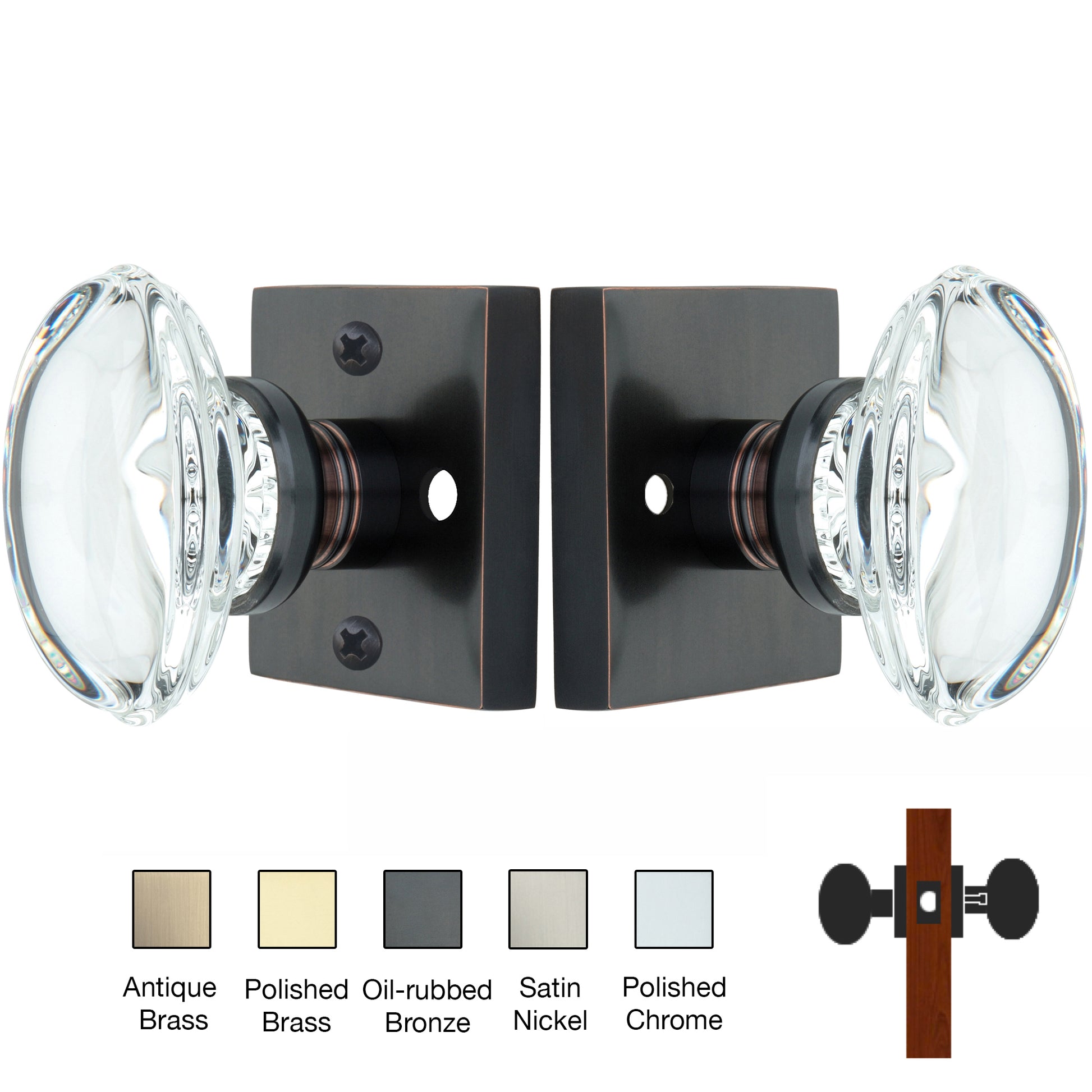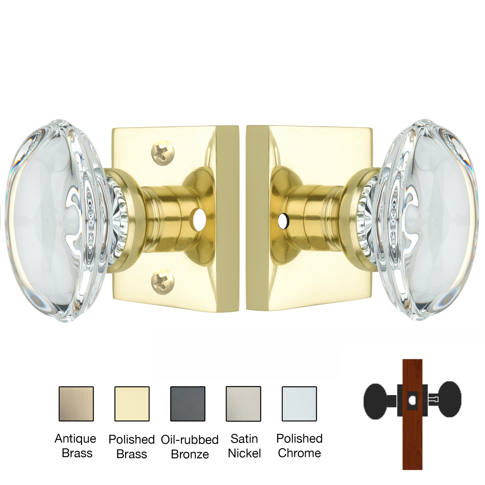 Square Rose with Oval Crystal Door Knobs - Privacy / Bathroom / Bedroom